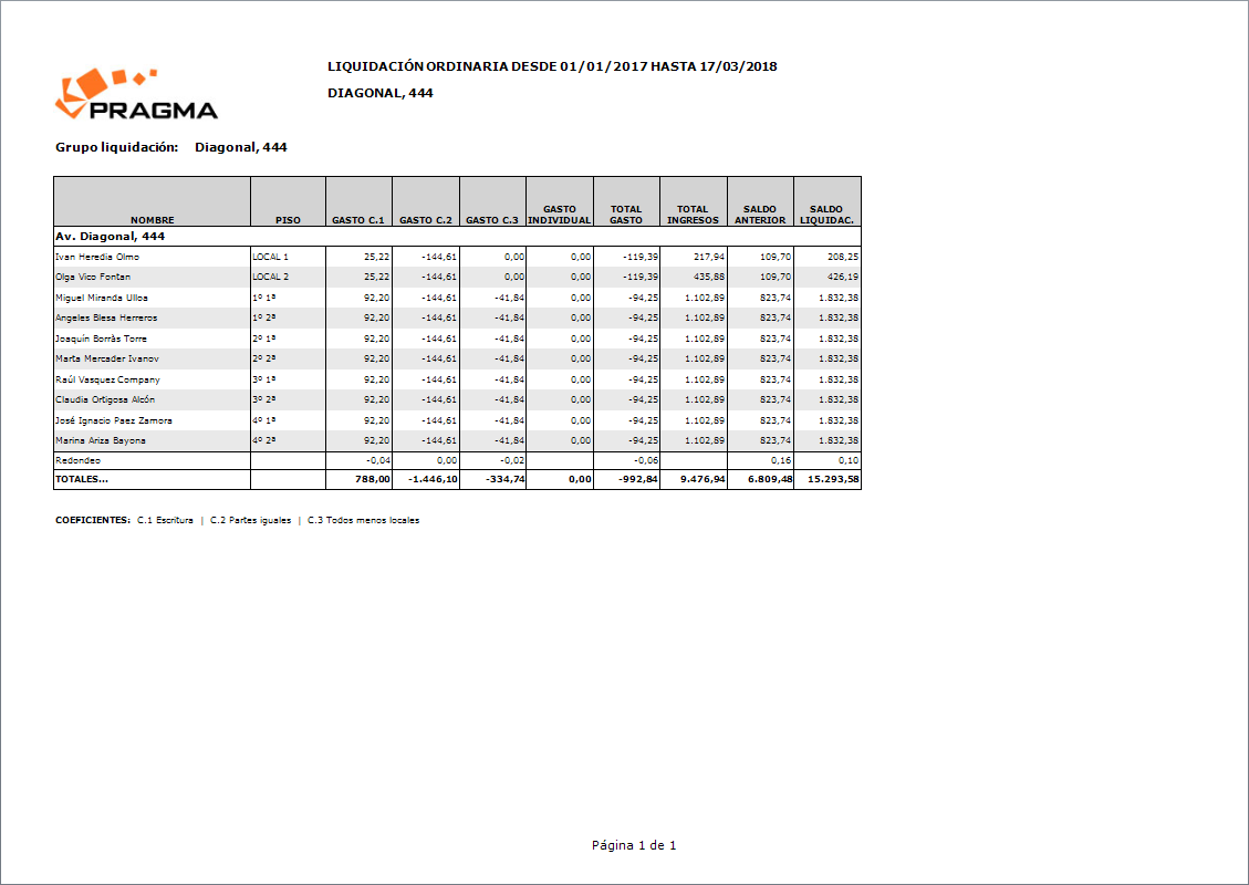 A continuación puede ver un ejemplo de la Liquidación ordinaria 8 coeficientes.