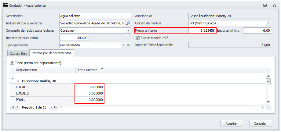 Se ha modificado la ficha de contador para ampliar a 6 el número de decimales en el precio unitario.