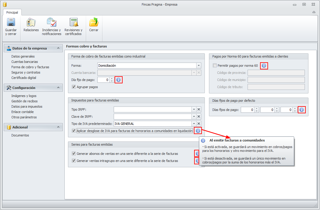 Veamos un ejemplo en la ficha de Datos empresa, en la que se ha incorporado este cuadro informativo vinculado a distintas casillas.