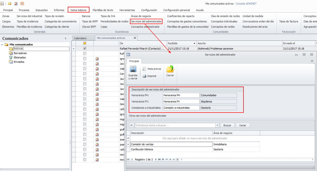 Se incorpora un nuevo informe que muestra, agrupado por meses el importe facturado por el administrador por cada uno de los diferentes servicios que presta.