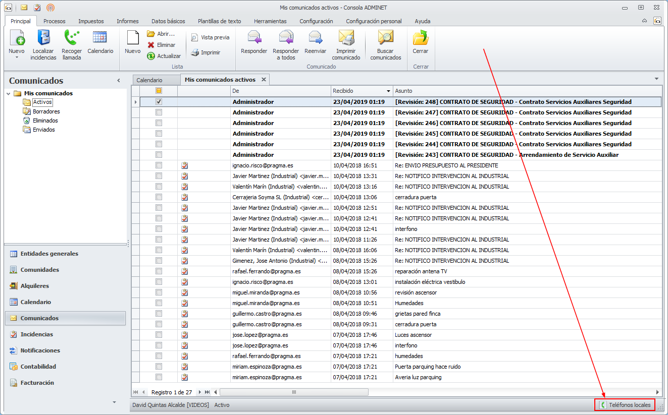 Se incorpora un nuevo botón en la ventana principal de adminet con el texto Teléfonos locales.