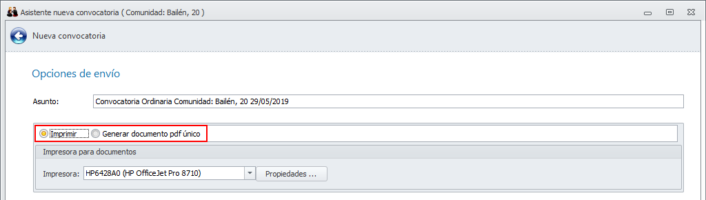 Si se escoge Imprimir, se solicita la impresora y las propiedades de impresión, como ya venía haciendo hasta ahora.