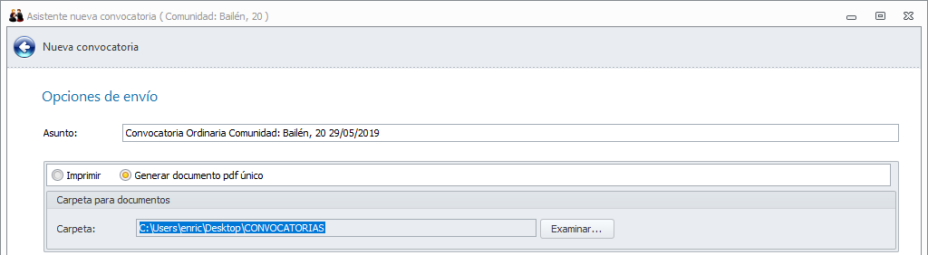 En asistente de envío de convocatorias y actas permitir el volcado de la impresión en un archivo pdf único