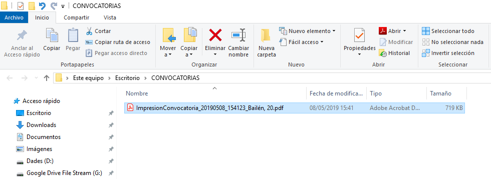 Una vez generado el documento pdf se abre una ventana mostrando el contenido de la carpeta que lo contiene.