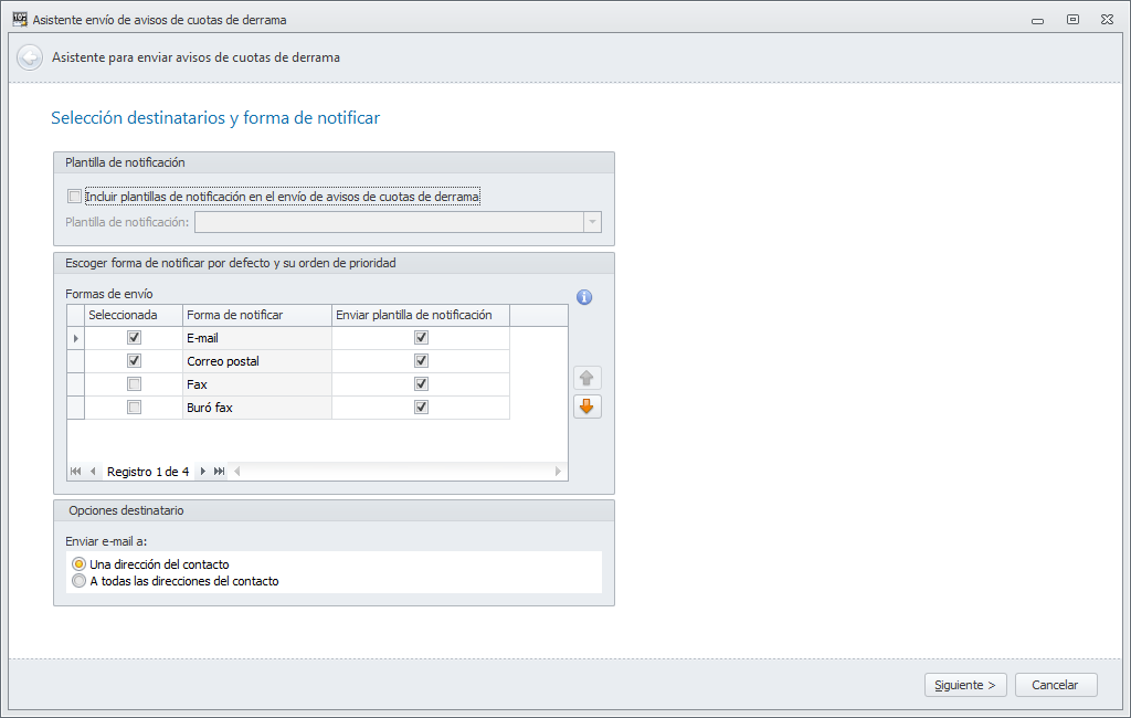 Envío masivo de avisos de cuotas de derrama