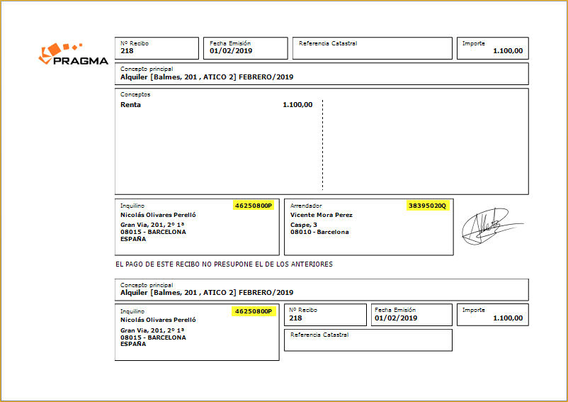 Se ha desplazado el NIF del arrendador y del inquilino a la línea superior, dejando más espacio para el nombre de ambos.