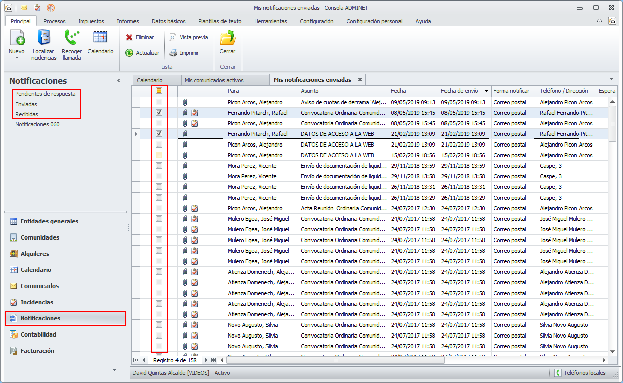 Se ha incorporado la posibilidad de realizar selección múltiple de notificaciones en las listas de notificaciones pendientes de respuesta, enviadas y recibidas.