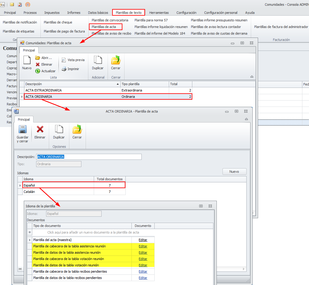 Para facilitar la aplicación de estos cambios, se han sobrescrito las subtablas de asistencia y votaciones de todas las plantillas de acta que tenga en su instalación. Si en su día realizó cambios en estas subtablas y desea mantenerlos, deberá volverlos a realizar tras la actualización.