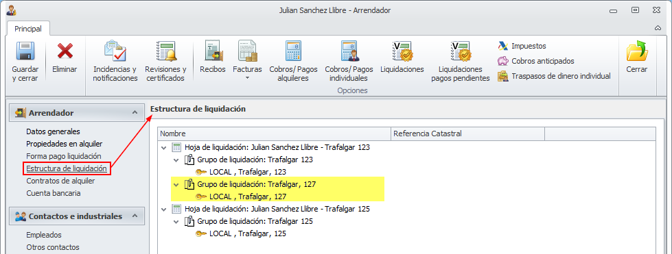 Haga clic aquí si desea ver cómo cambiar la estructura de liquidación del arrendador.