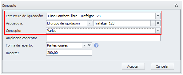 En cambio, si escoge un perceptor de reparto, estos datos no se solicitan, ya que el gasto se imputará directamente en su liquidación de reparto.