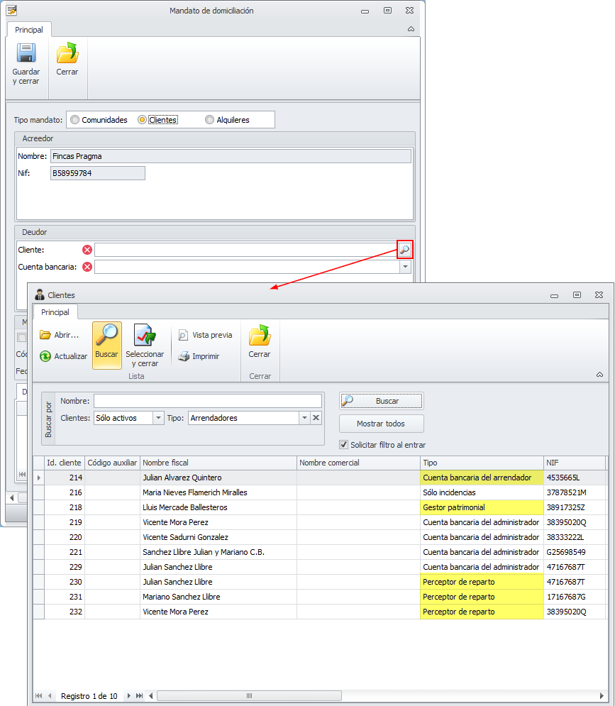 Se ha modificado la ficha del mandato de domiciliación para que aquellos que vayan vinculados a clientes del administrador, puedan tener como deudor a un perceptor de reparto, un gestor patrimonial o un arrendador que se administra con cuenta bancaria propia. Este cambio propicia poder cobrar saldos de liquidación negativos a través de un fichero de adeudos directos SEPA.