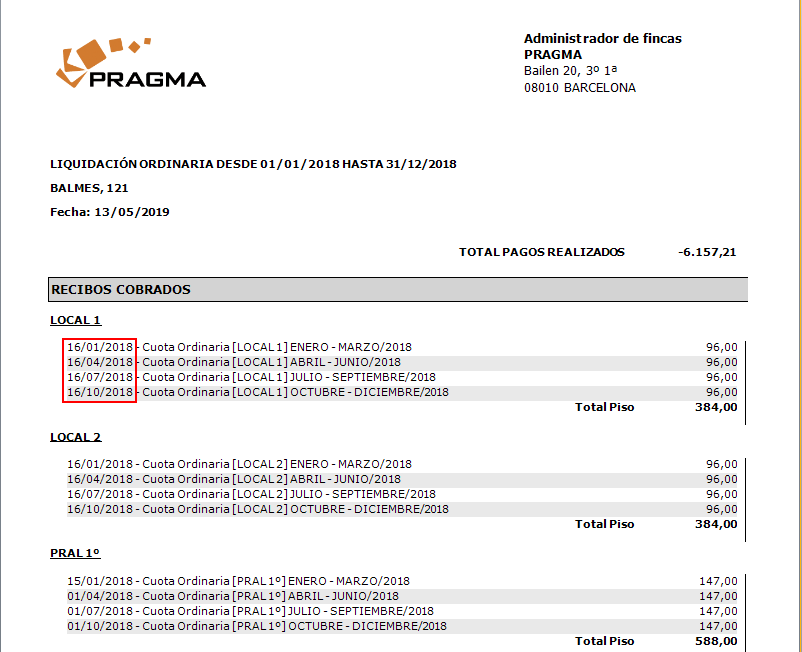 Esta casilla sólo es visible y seleccionable si los cobros pagos individuales se desglosan por piso. Si se agrupan, esta casilla no se muestra y no se puede seleccionar.