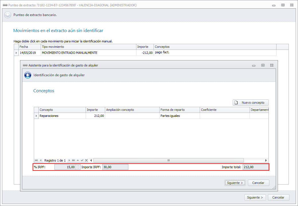 Extractos (norma 43) -> Arrendadores -> Gastos múltiples del arrendador/perceptor
