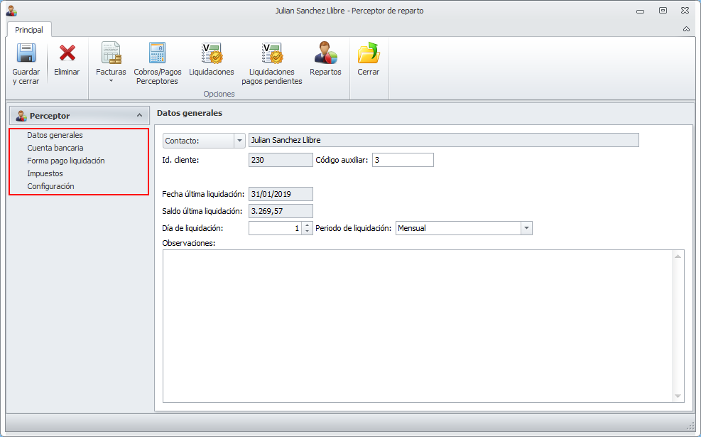 Se ha reordenado la ficha del perceptor de reparto, agrupando sus datos en secciones, para facilitar su consulta.