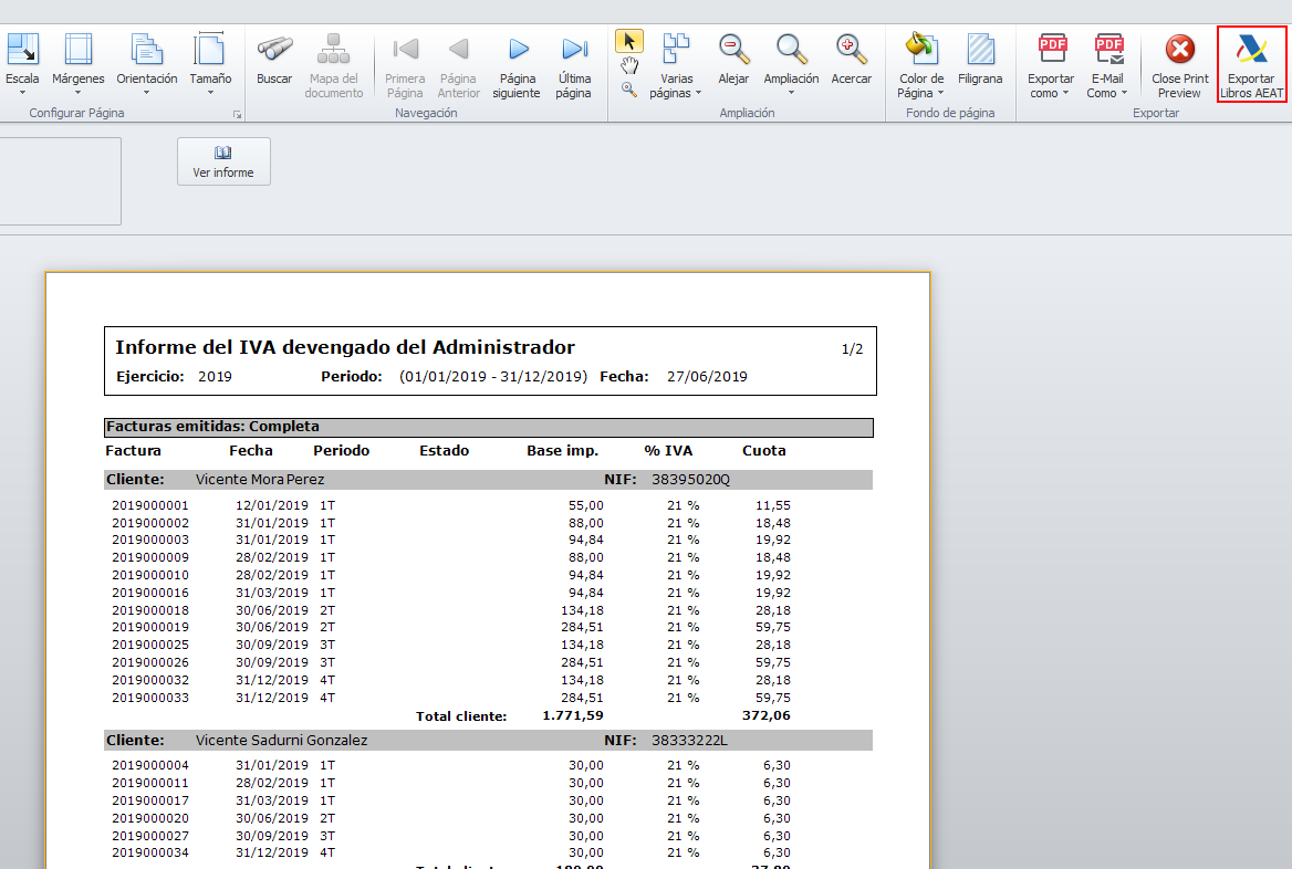 Exportar Informes de IVA devengado y soportado del administrador a format excel para la AEAT