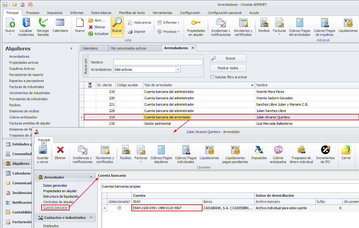 Mejoras en la gestión de los arrendadores de tipo 'Cuenta bancaria del arrendador'