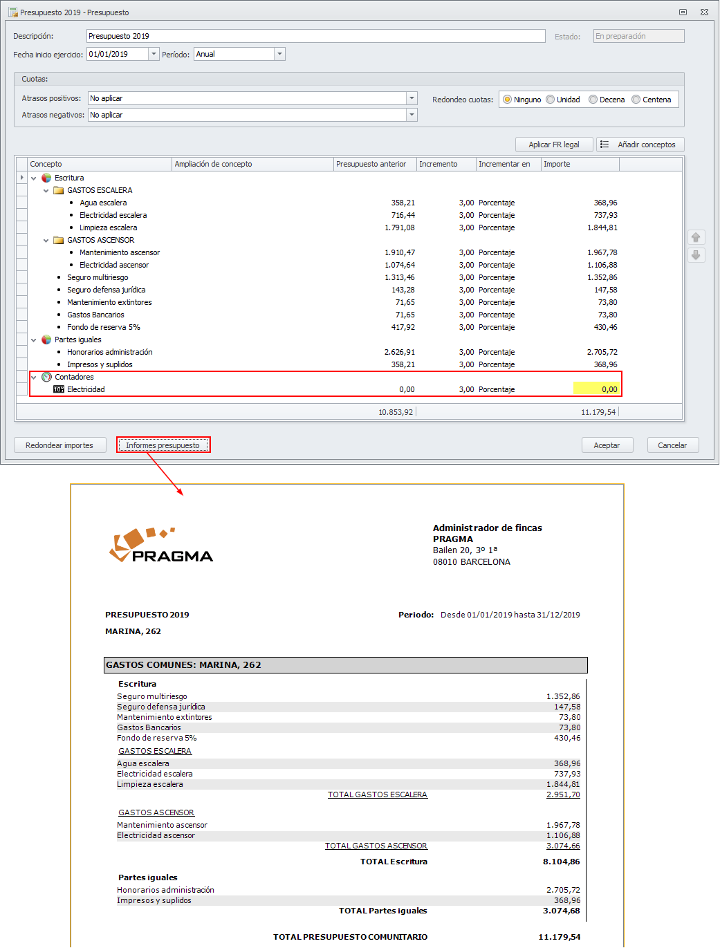 Se ha modificado la impresión del informe del presupuesto para ocultar los conceptos de contador en caso de que el importe presupuestado sea cero.