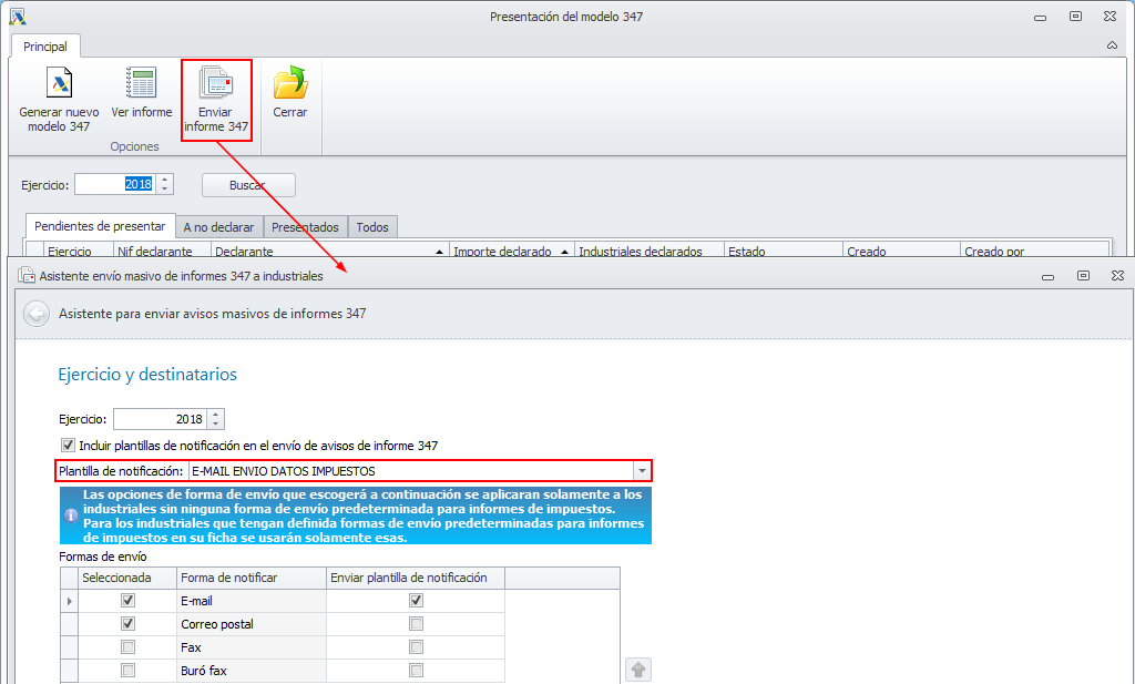 Y a continuación, vea como un asistente de envío de información tributaria cualquiera ofrece, por defecto, esta plantilla.
