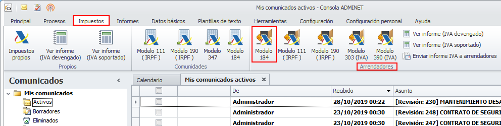 Se ha incorporado la preparación del modelo 184 de la AEAT para los arrendadores.