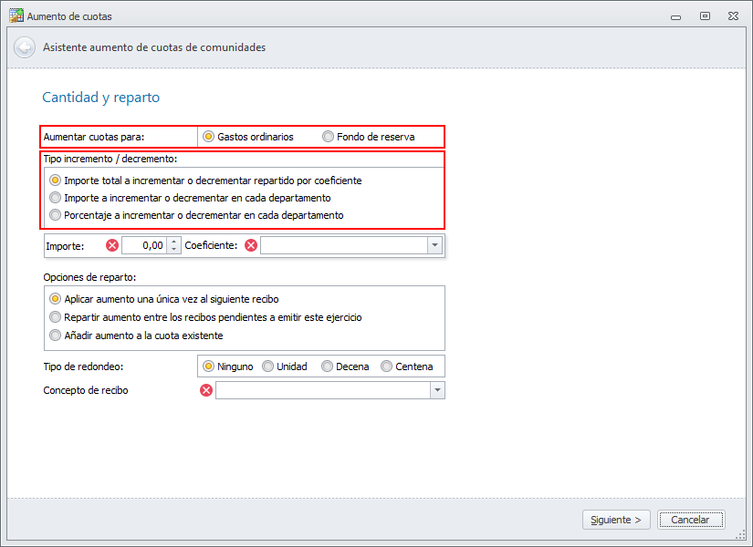 Se ha modificado la opción Aumento de cuotas periódicas, añadiendo las siguientes posibilidades: