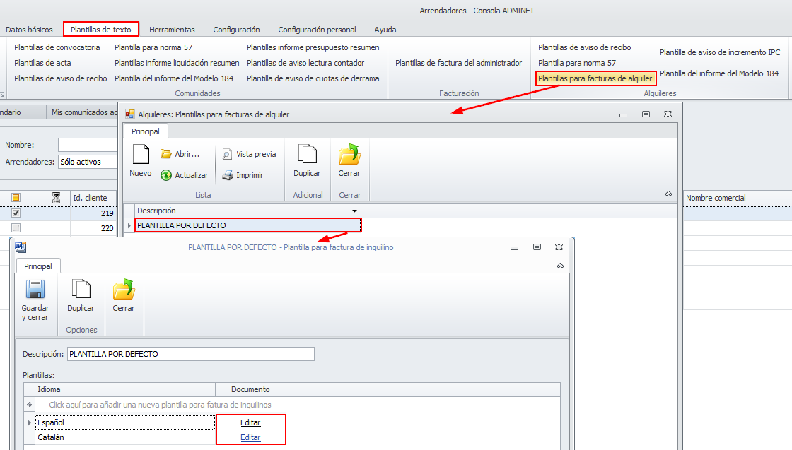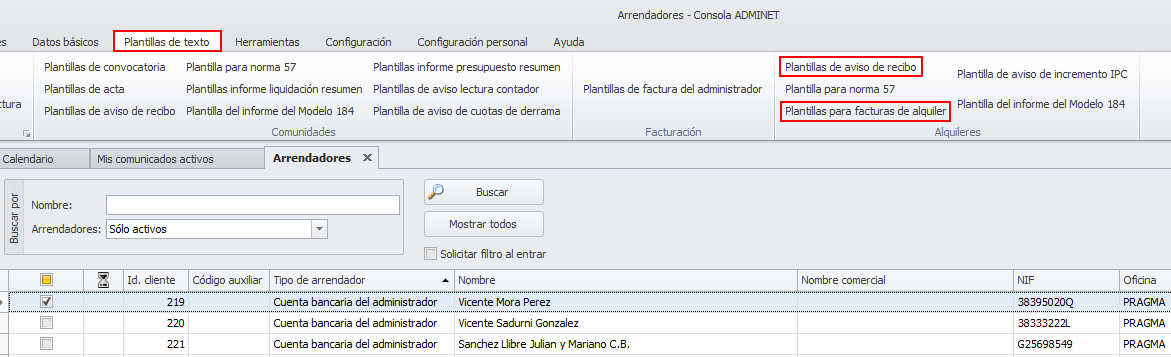 Se han rediseñado las plantillas de aviso de recibo y la plantilla de factura de alquiler para resolver ciertos problemas detectados en su estructura de datos. Estas plantillas sobrescriben las que se tengan operativas.