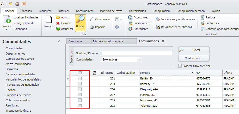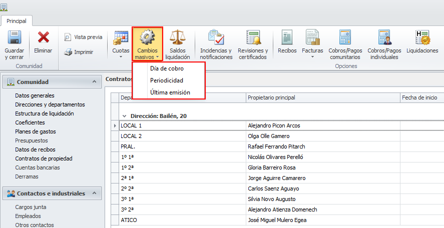 Se ha incorporado en la ficha de la comunidad un nuevo botón para realizar cambios masivos en los datos de recibos de la comunidad.