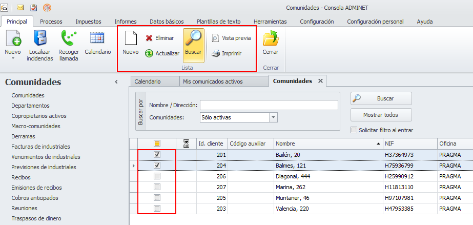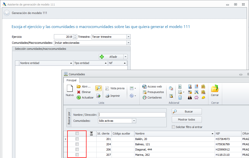 Se ha modificado la vista de comunidades y macro-comunidades, incluyendo la posibilidad de realizar una selección múltiple.