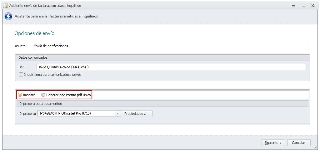 Si se escoge Imprimir, se solicita la impresora y las propiedades de impresión, como ya venía haciendo hasta ahora.