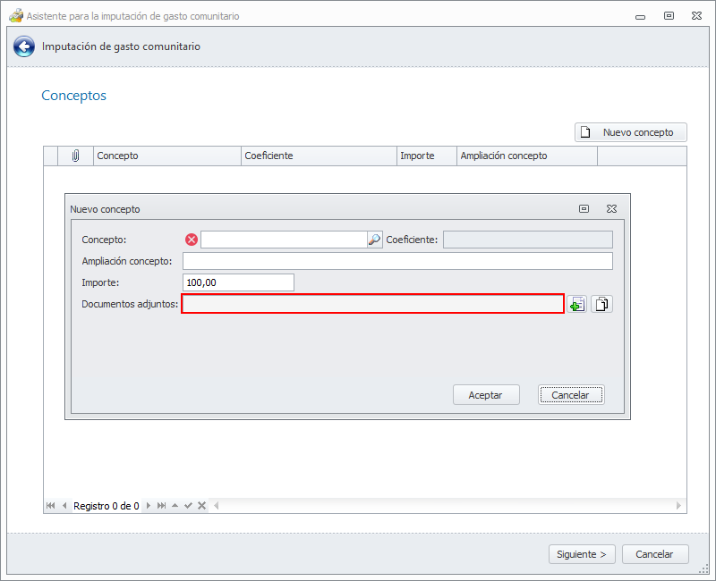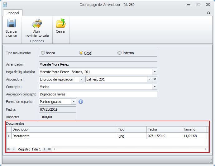 En el proceso Movimientos de caja, se ha modificado la ventana de identificación de los movimientos no relacionados con recibos, para permitir adjuntar documentos.