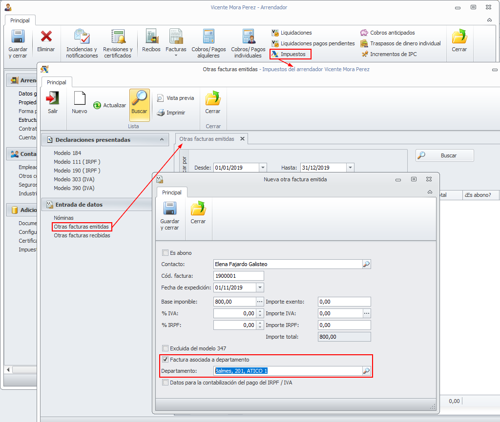 Acceso al modelo de impuestos desde las facturas emitidas del arrendador