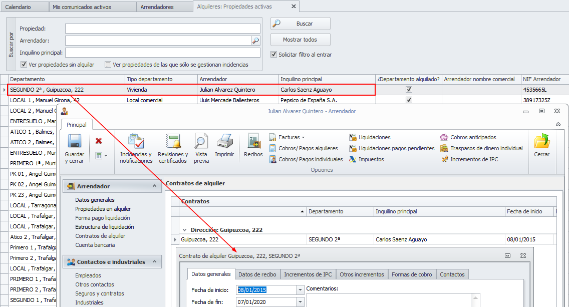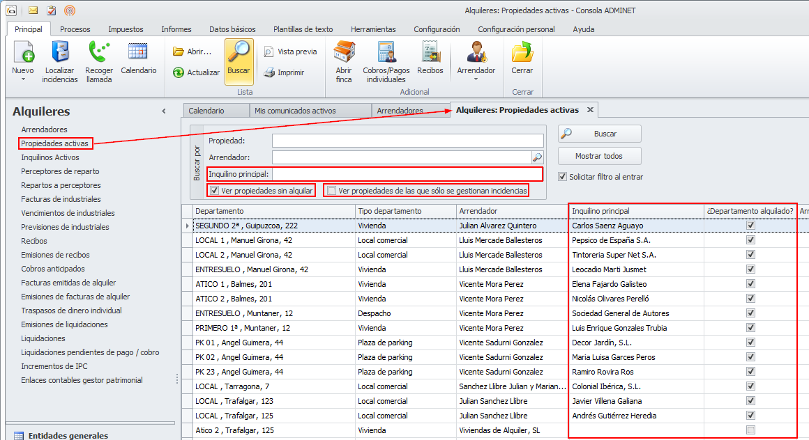 Se ha mejorado la vista de propiedades activas para que desde ella se pueda saber quién es el inquilino y además se puedan incluir los departamentos de los que sólo se gestionan incidencias.