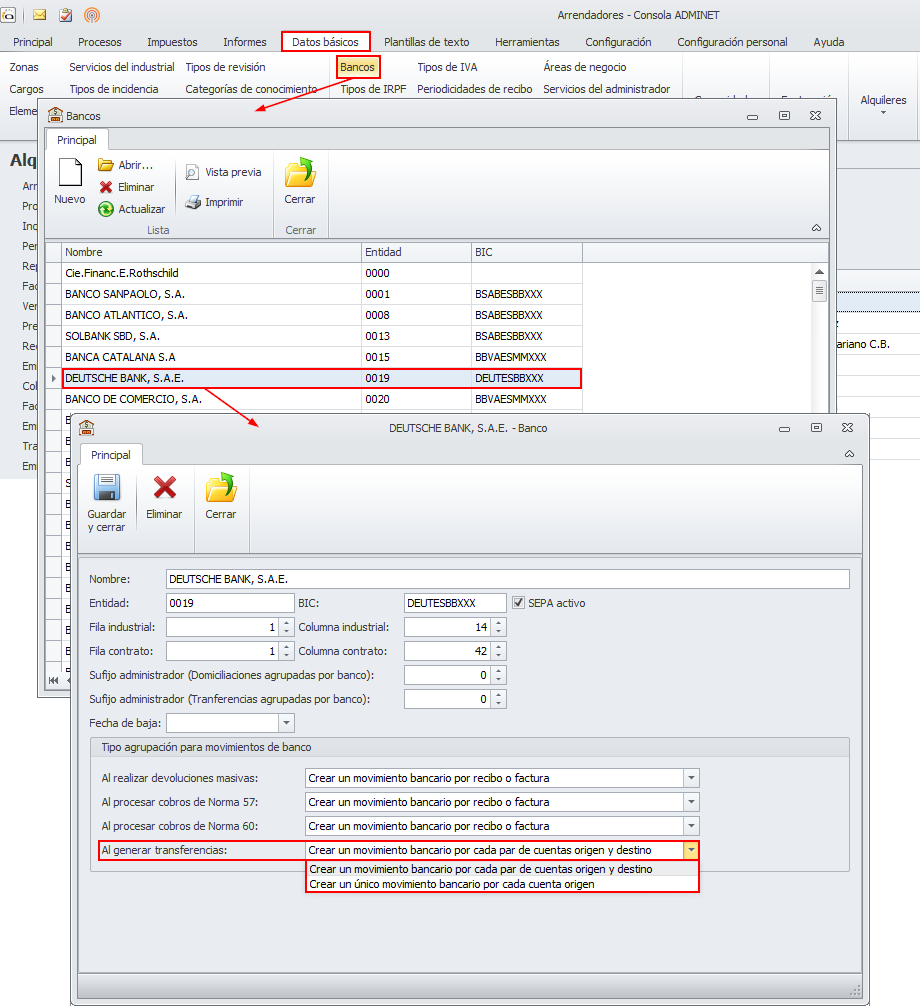 Se ha modificado la tabla de bancos para permitir configurar la forma en la que contabiliza la remesa de transferencias bancarias.