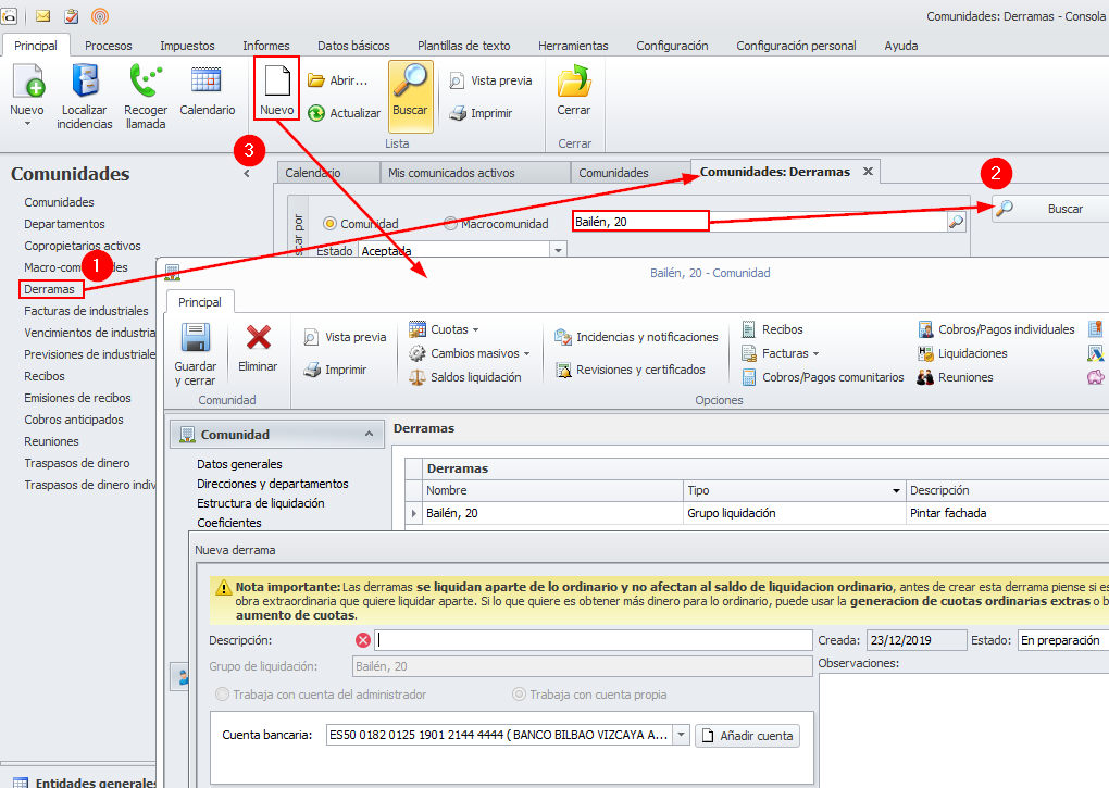 Creación de nuevas derramas desde la ventana de derramas de comunidades