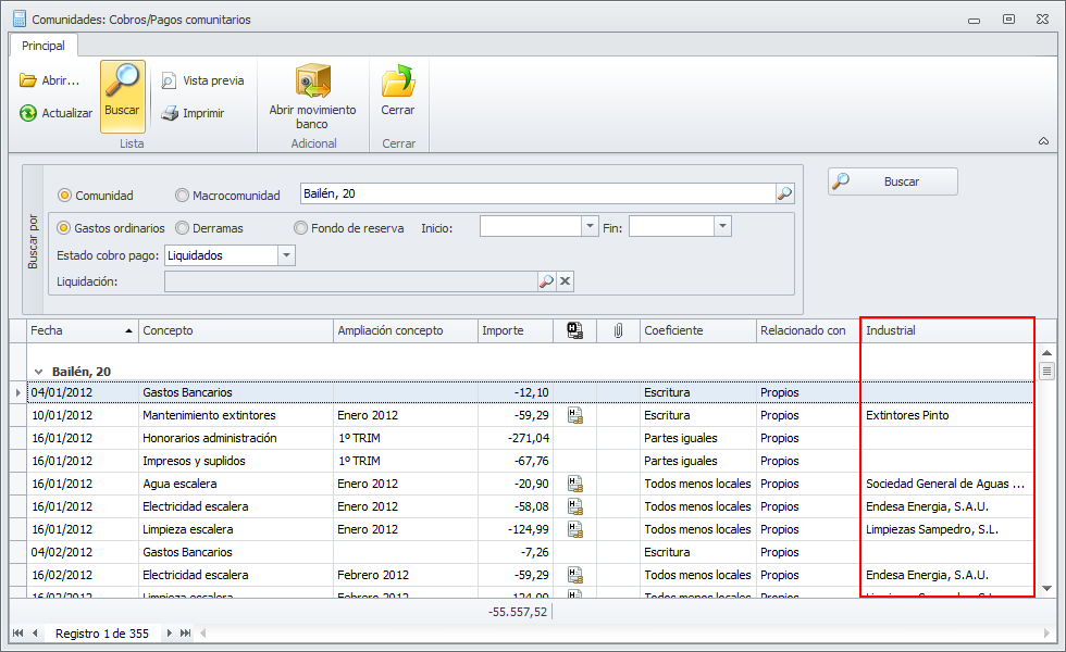Se ha incorporado una nueva columna en la vista de cobros pagos comunitarios para mostrar el nombre del industrial vinculado a la factura de la que proviene el cobro pago. Si el cobro pago no proviene de ninguna factura, esta casilla estará vacía.