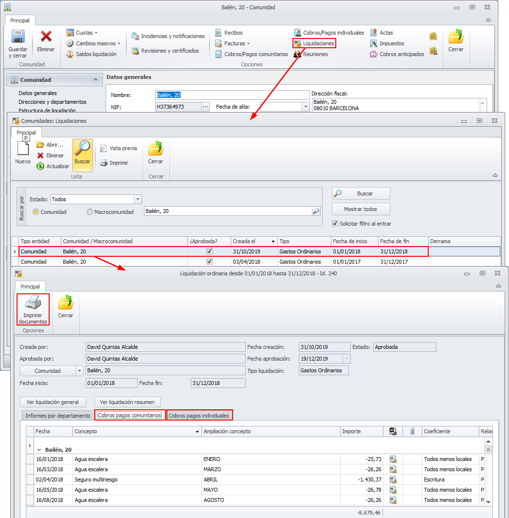 Haga clic aquí para ver la impresión de cobros de recibos de comunidad.