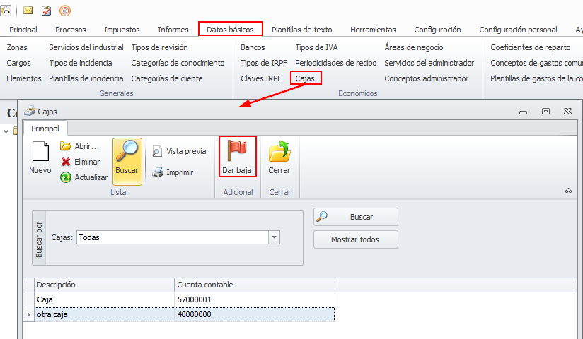 "Dar de baja" cajas