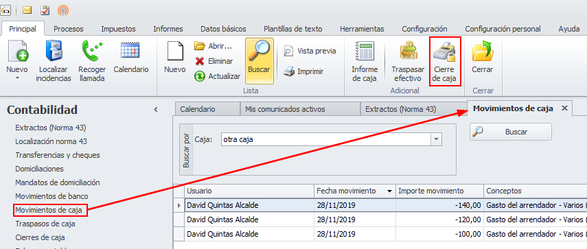 En la ficha de los movimientos de caja que se encuentran incluidos en un cierre, se ha incorporado un botón que permite abrir la ficha de ese cierre.