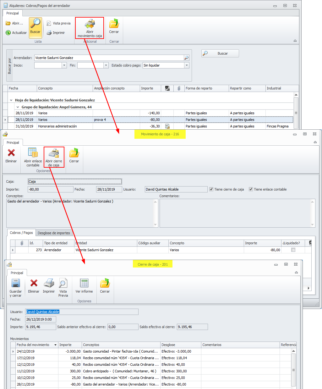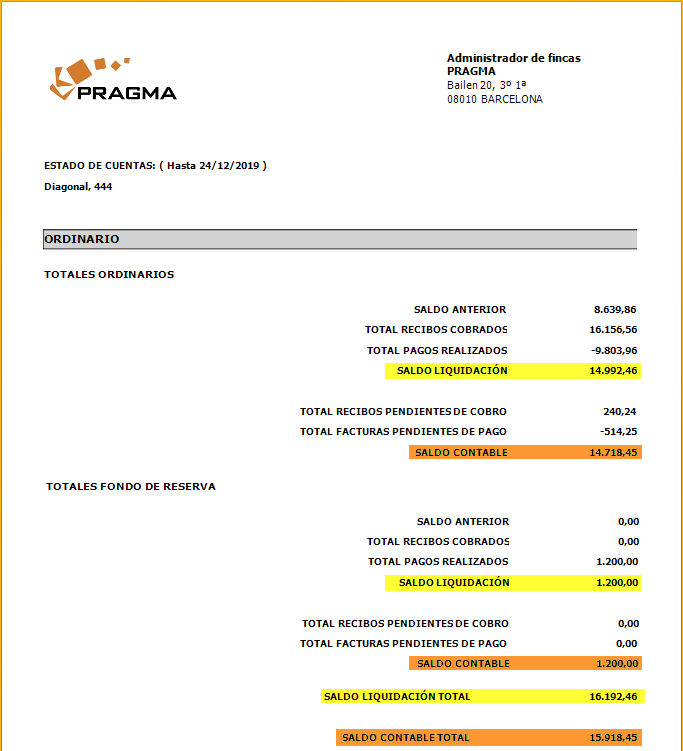 Se dispone de la posibilidad de obtener, de forma rápida un estado de cuentas detallado para arrendadores y perceptores de reparto. Es muy útil cuando se desea saber si se dispone de saldo suficiente para afrontar el pago de un gasto o un anticipo al cliente.