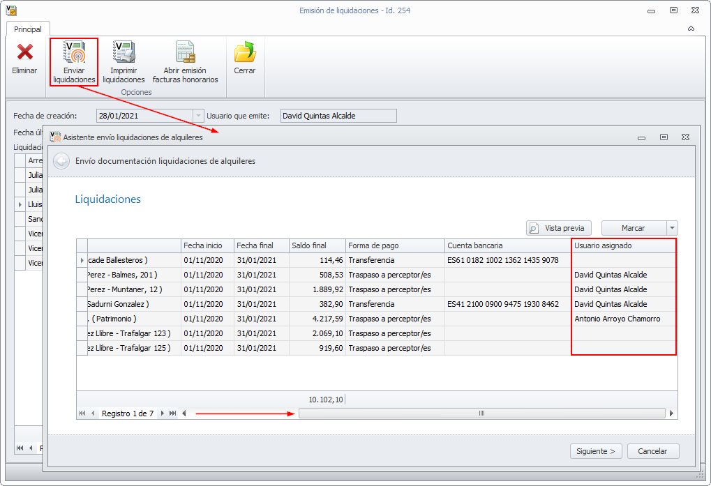 Ejecutar asistente de envío de avisos de recibo tras la emisión de recibos y facturas de alquiler