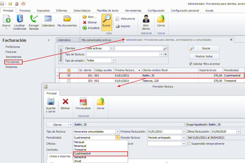 Añadir periodicidad cuatrimestral en previsiones del administrador