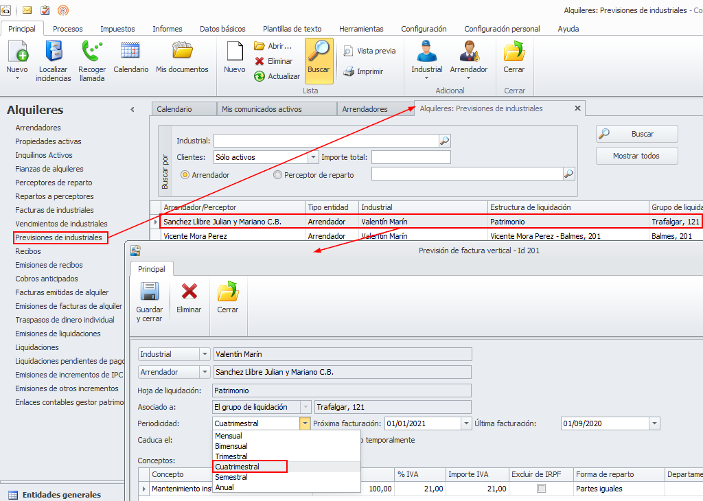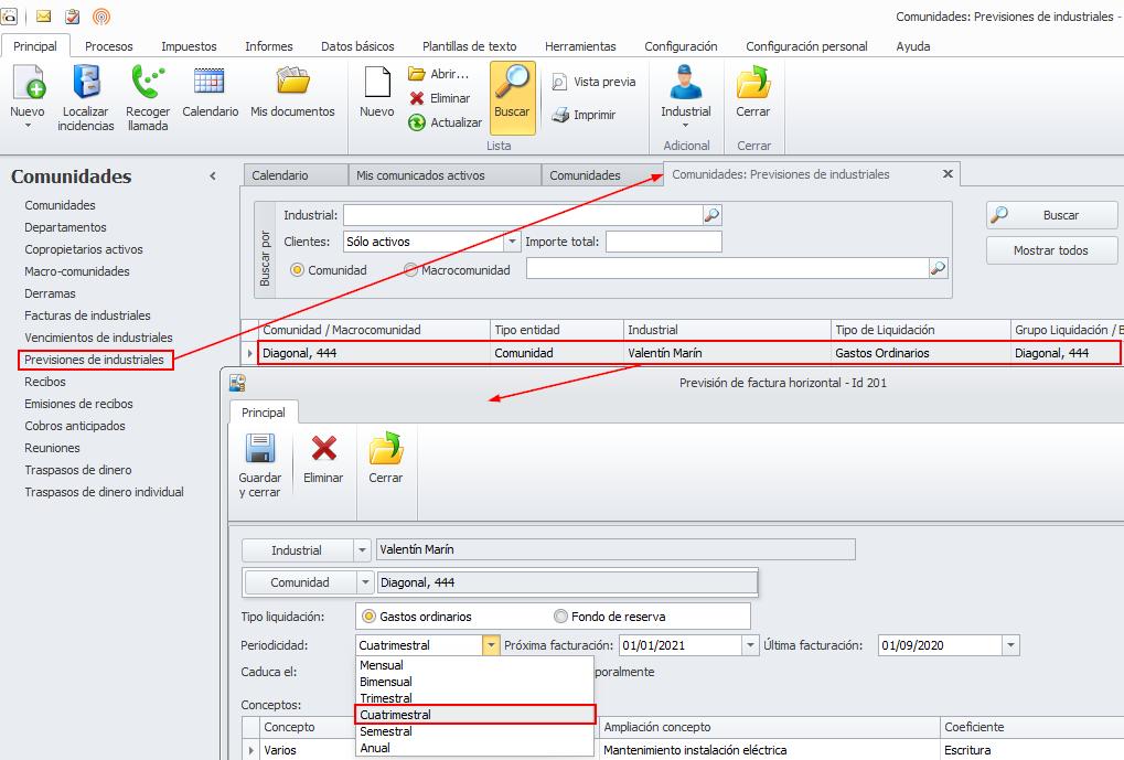 Se ha añadido esta nueva periodicidad a las ya existentes en las previsiones de facturas de industriales.