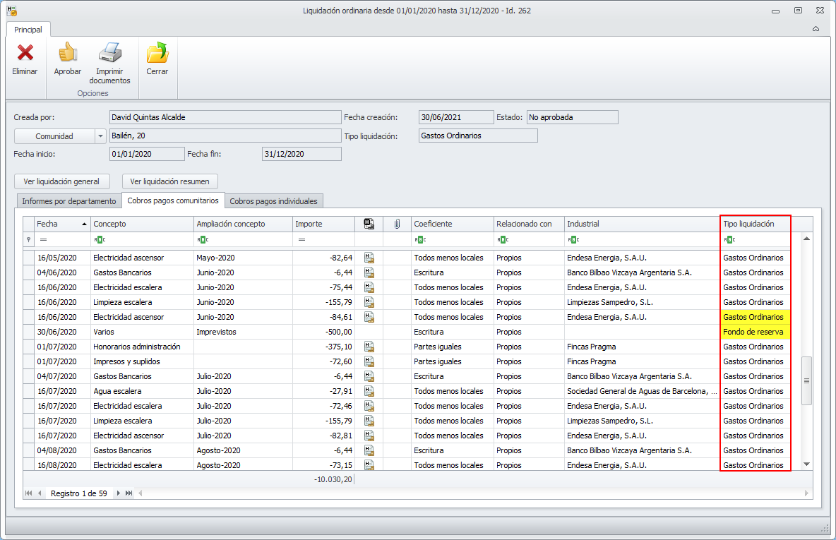 Esta columna tiene especial utilidad para identificar el tipo de liquidación del movimiento cuando se incluye el fondo de reserva dentro de la liquidación ordinaria.