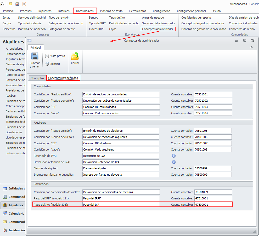 Guardar los justificantes de presentación de los modelos 303 y 111 en los cobros pagos del arrendador