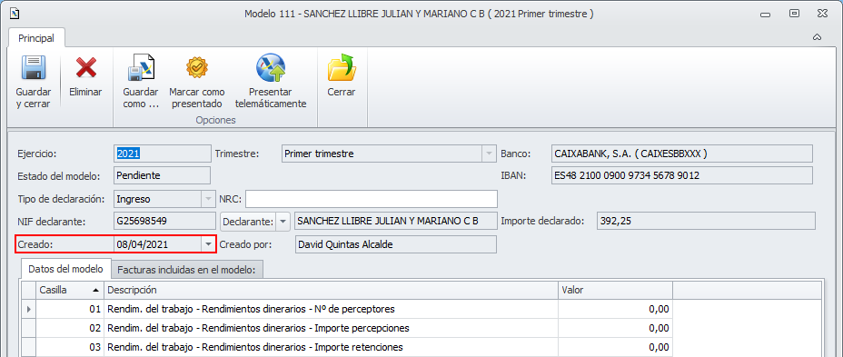 Este nuevo informe reúne las retenciones aplicadas por la comunidad a sus industriales y empleados (que se declaran en el modelo 111).