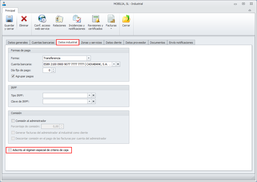 Este cambio ha requerido trasladar la casilla Adscrito al régimen especial de criterio de caja de la ficha del proveedor a la ficha del industrial.