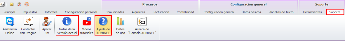 Se ha traspasado la ayuda de adminet a un nuevo entorno más ágil e intuitivo. Se sigue accediendo desde las opciones Notas de la versión actual y Ayuda de ADMINET del menú Soporte.