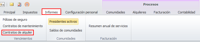 Se ha modificado el informe que se obtiene desde la opción de menú Informes → Contratos de alquiler.