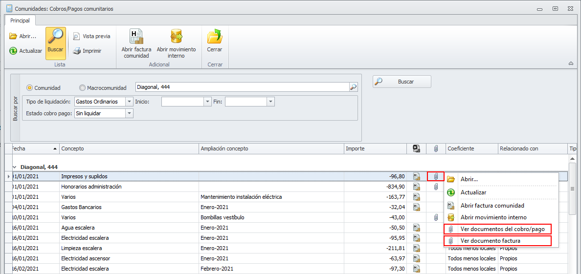 Se ha mejorado el funcionamiento del menú contextual de la vista de cobros pagos comunitarios, para que: