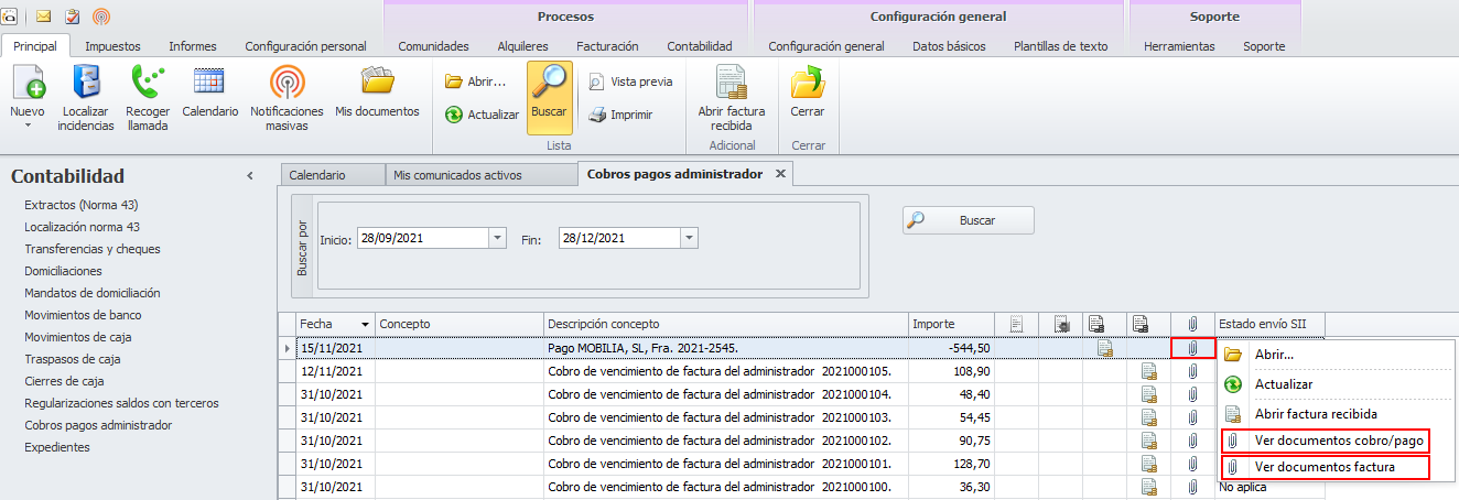 Se ha mejorado el funcionamiento del menú contextual de la vista de cobros pagos del administrador, para que: