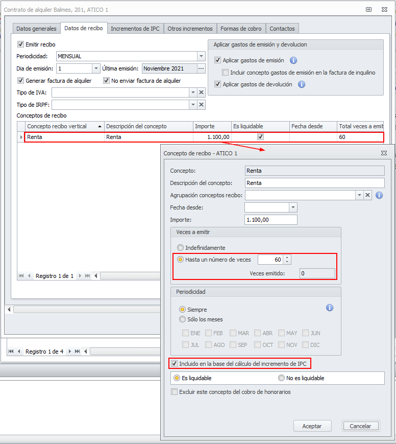 Se ha modificado el proceso de cálculo de la base del incremento de IPC para que tenga en cuenta, además de los conceptos indefinidos, aquellos que se emiten un determinado número de veces y todavía tiene emisiones pendientes.